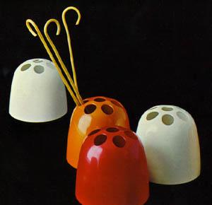 さて、左の写真はイタリア「ARTEMIDE」の「DEDALO」という名の傘立てです。ARTEMIDEは現在は照明器具メーカーとして有名ですが、これがデザインされた70年代のころは当時の最先端素材であるプラスチックを用いた家具を多数生産し
