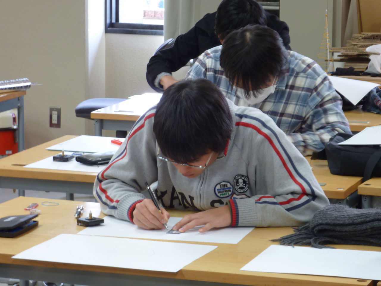 ワードマッピングやモチーフといったデザインのアプローチの手法について学んだ後、一人30作品のアイデアスケッチを描きます。その中から担当教員とディスカッションをしたうえで最終案を決定し、図面を作成した後に模型を製作します。